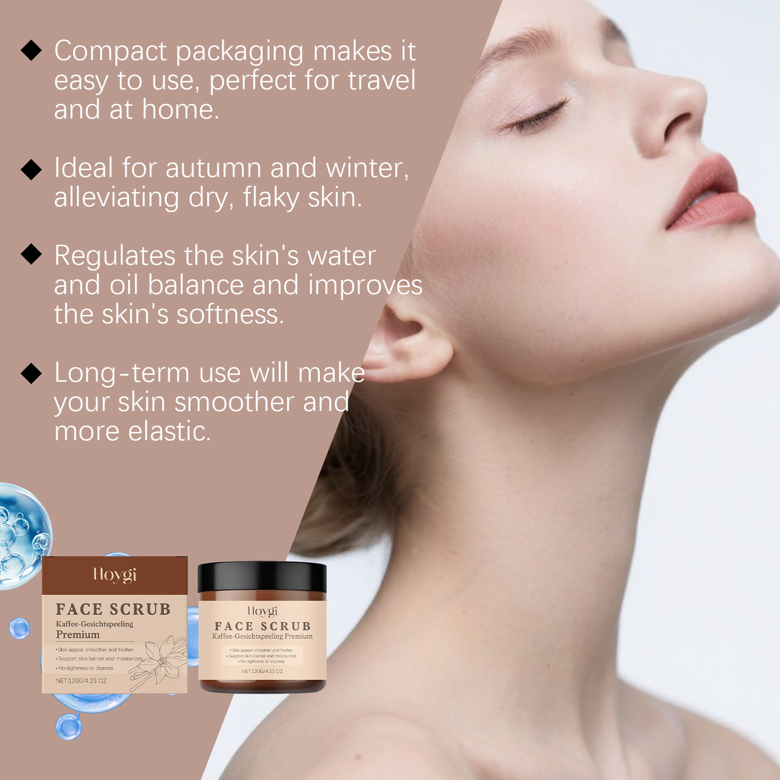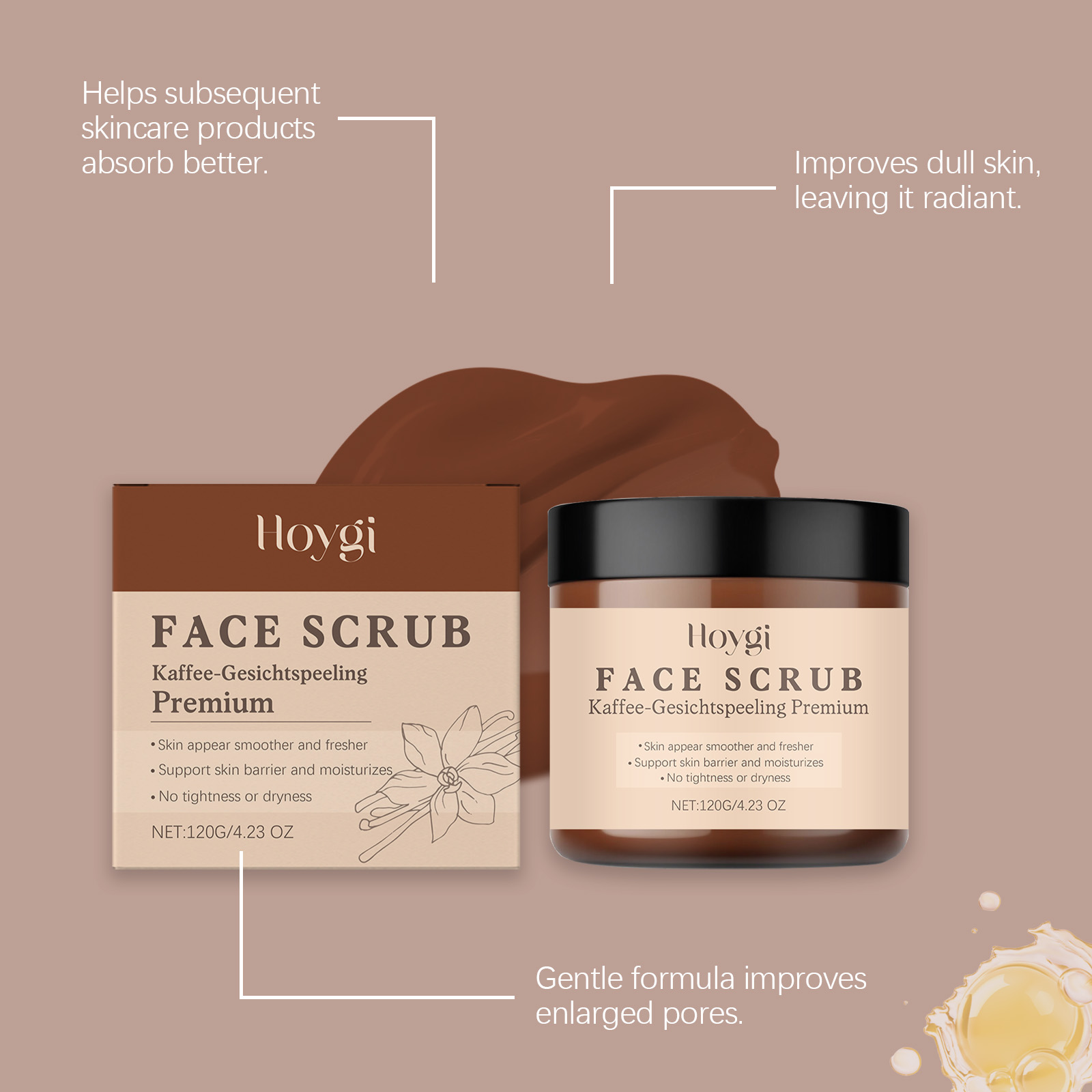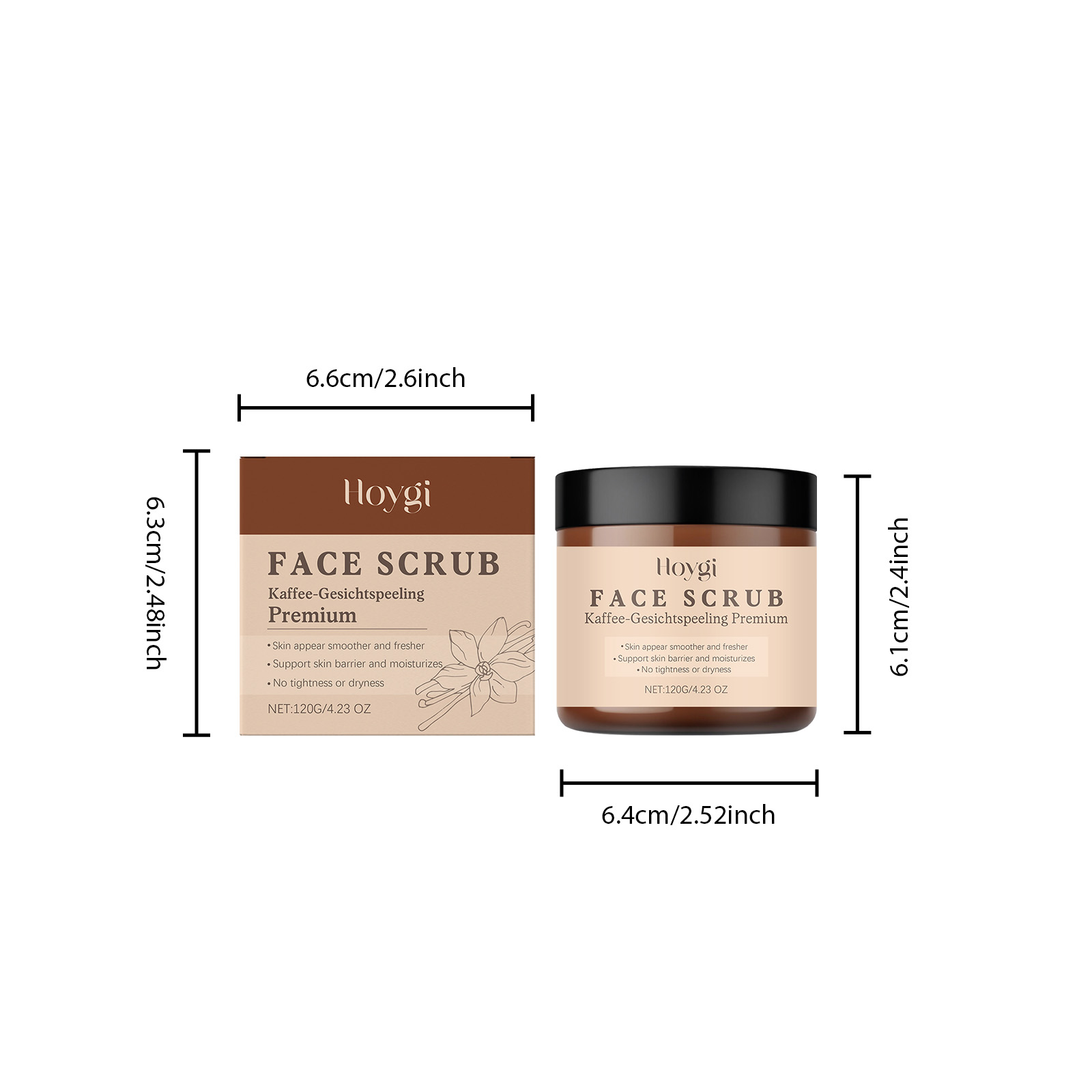 Our vanilla coffee facial scrub is carefully formulated with vanilla fruit and apricot kernel oil. Designed specifically to reduce roughness and make the skin feel more delicate. The usage method is extremely convenient: Take an appropriate amount of the product and apply it evenly to the moist facial skin. Massage in circular motions and then rinse thoroughly with clean water. And it can make the skin feel fresh and non-sticky after washing, and is easy to rinse off.