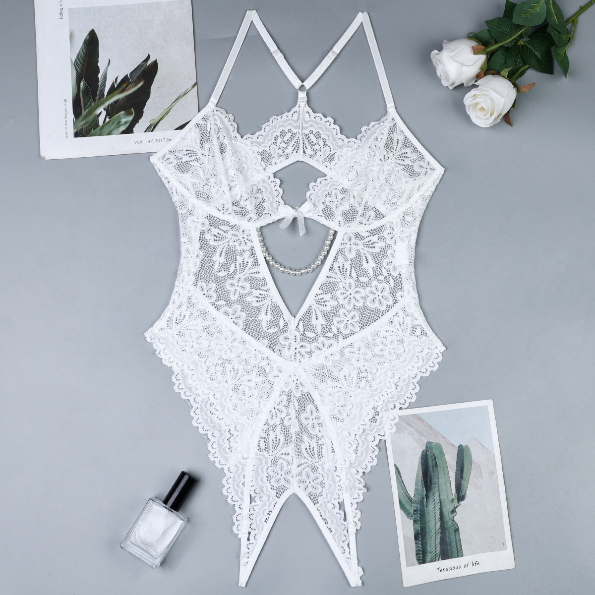 Womens Lace Sexy Open-Crotch Bodysuit With Butt-Exposing Design